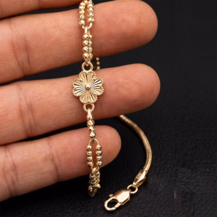 Gerçek 14 ayar altından özel işçilikle üretilen bu ataç bileklik, modern çizgilere sahip ince yapısıyla zarafeti sevenlerin favorisi olmaya aday.
