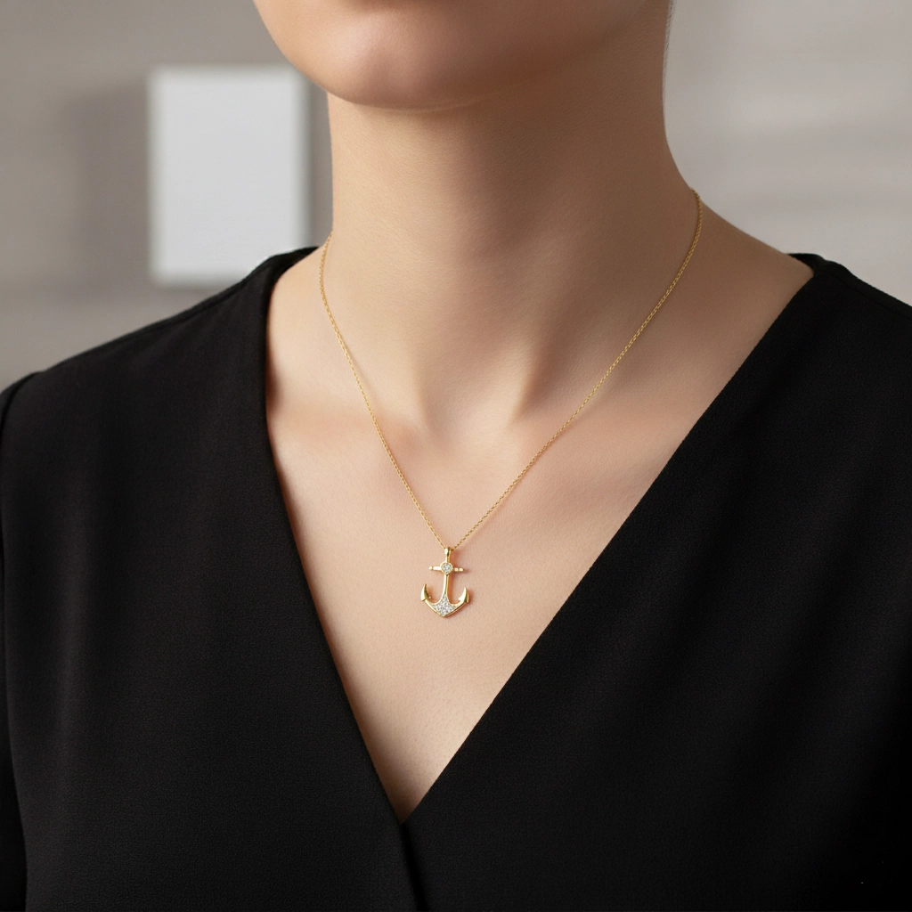 14 Ayar Altın Çapa Kolye – Güç, Sadakat ve Sevginin Zarif Sembolü