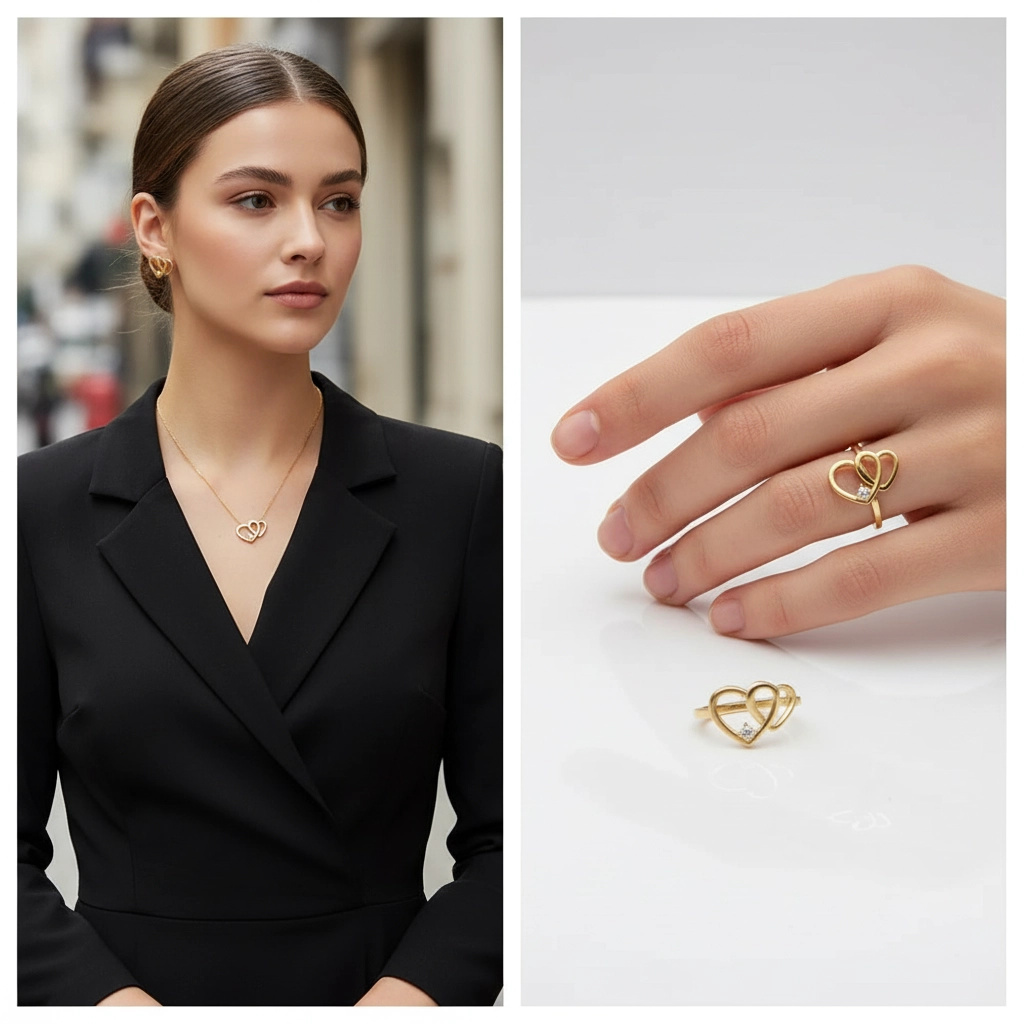- Tasarım: Birbirine geçmiş ikili kalp formu