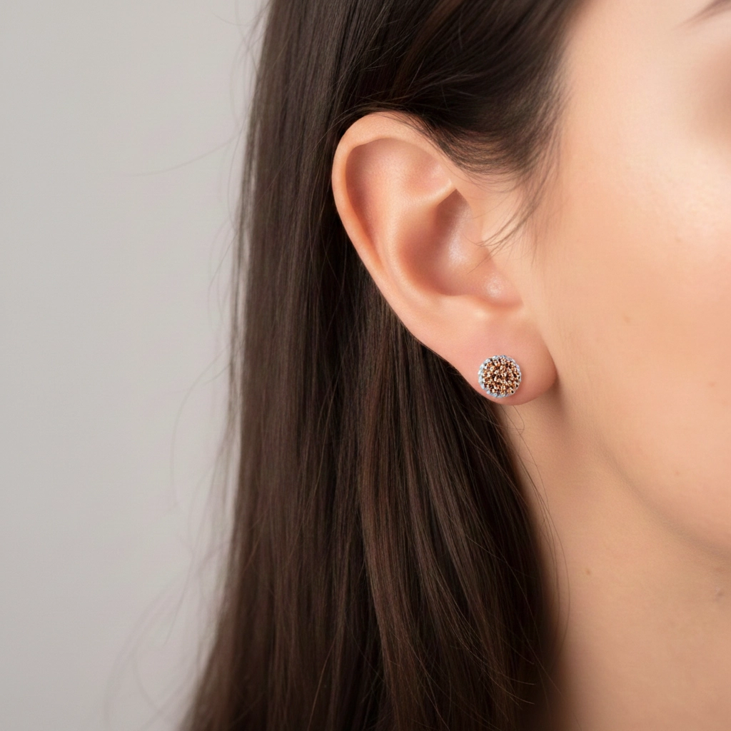 Italian işçilikle şekillendirilen top form, küpeye net ve şık bir görünüm kazandırır.